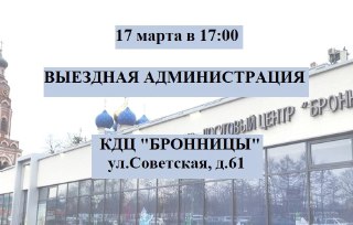 17 марта, в 17:00 в фойе культурно-досугового центра «Бронницы» состоится выездная администрация.