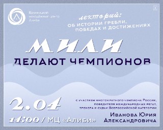 2 апреля в Молодежном Центре «Алиби» проведут лекторий-экскурсию «Мили делают чемпионов». Он состоится в рамках выставки «Сила Воды»🚣♂️