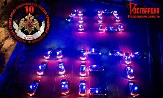 Росгвардейцы в Подмосковье провели масштабный флешмоб, посвящённый этому дню. На одной из площадок региона 30 патрульных автомобилей вневедомственной охраны выстроились в символичную надпись «10 лет».