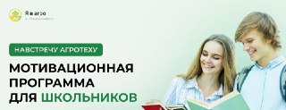 АО «Россельхозбанк» совместно с Фондом «Сколково» проводят мотивационную программу «Навстречу агротеху», которая поможет для привлечения их в аграрную и финансовую отрасли, а также окажет финансовую поддержку абитуриентов, поступающих в высшие учебные заведения, подведомственные Министерству сельского хозяйства Российской Федерации, и иные высшие учебные заведения, осуществляющие подготовку специалистов для отраслей АПК.