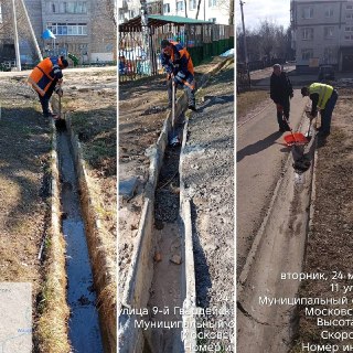🧹⚡️ В целях недопущения подтоплений сотрудники МБУ «ДОДХИБ» на ежедневной основе проводят расчистку систем водоотведения от грязи, смета и мусора, скопившихся за зимний период.
