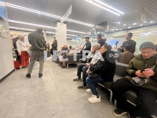 Людям говорят, что своей очереди нужно дожидаться больше часа. Сотрудники все же пытаются обслужить клиентов «в ручном режиме».