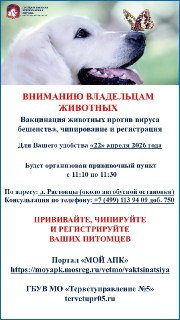 Государственное бюджетное учреждение ветеринарии Московской области «Территориальное ветеринарное управление №5» (далее – Учреждение) информирует.