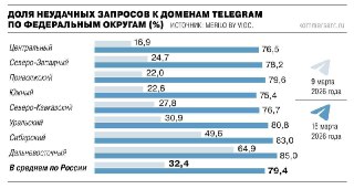 Мессенджер Telegram заблокирован почти на 80% — «Коммерсантъ»