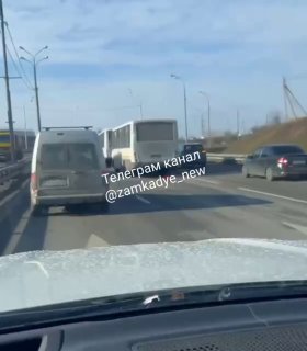На Волковском шоссе в Мытищах одна маршрутка догнала другую