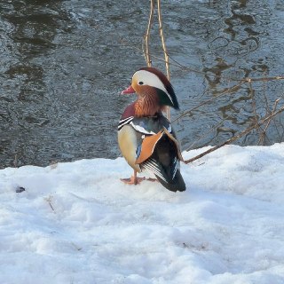 Если кто-то не знает — это краснокнижная утка-мандаринка.