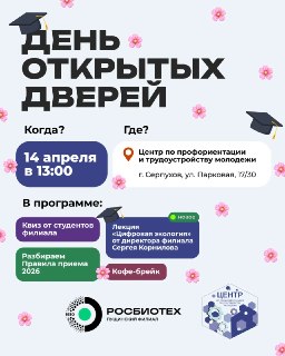 🎓 ПущГЕНИ — филиал РОСБИОТЕХа 14 апреля приглашает школьников и родителей на День открытых дверей