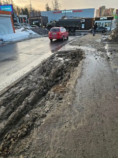 Героическая борьба с последствиями полнейшего бардака, в части содержания территорий, посредством смешивания сыпучей фракции, отдаленно похожей на асфальт, с жидким агрегатным состоянием талого снега
