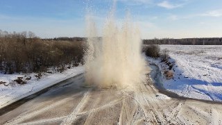 Атмосферные кадры подрыва льда на слиянии рек Сестры и Дубны в районе деревни Устье-Стрелка.