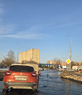 В Дмитрове на Профессиональной улице весной и после сильного дождя потоп. Для водителей поставили маяк,