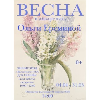 4 апреля в ДК с. Введенское открывается выставка акварелей Ольги Михайловны Ерёминой. #звениинфо_афиша